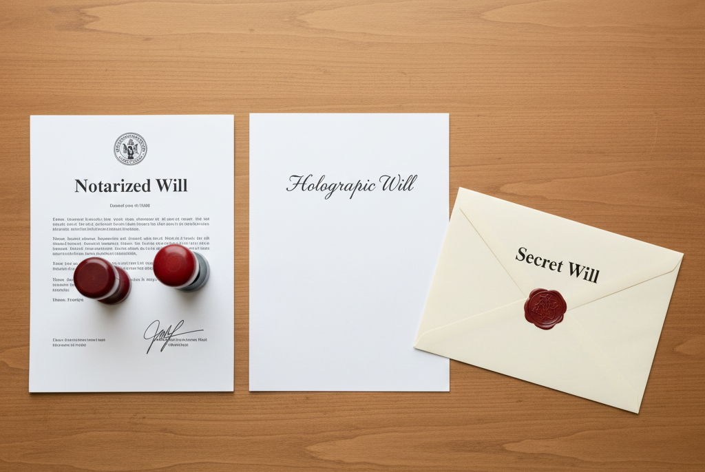 | 秘密証書遺言 | 内容を秘密にしたまま、公証人と証人に遺言書の存在だけを証明してもらう。 | 内容を誰にも知られずに済む。 | 内容の不備はチェックされない。家庭裁判所の検認が必要。 |